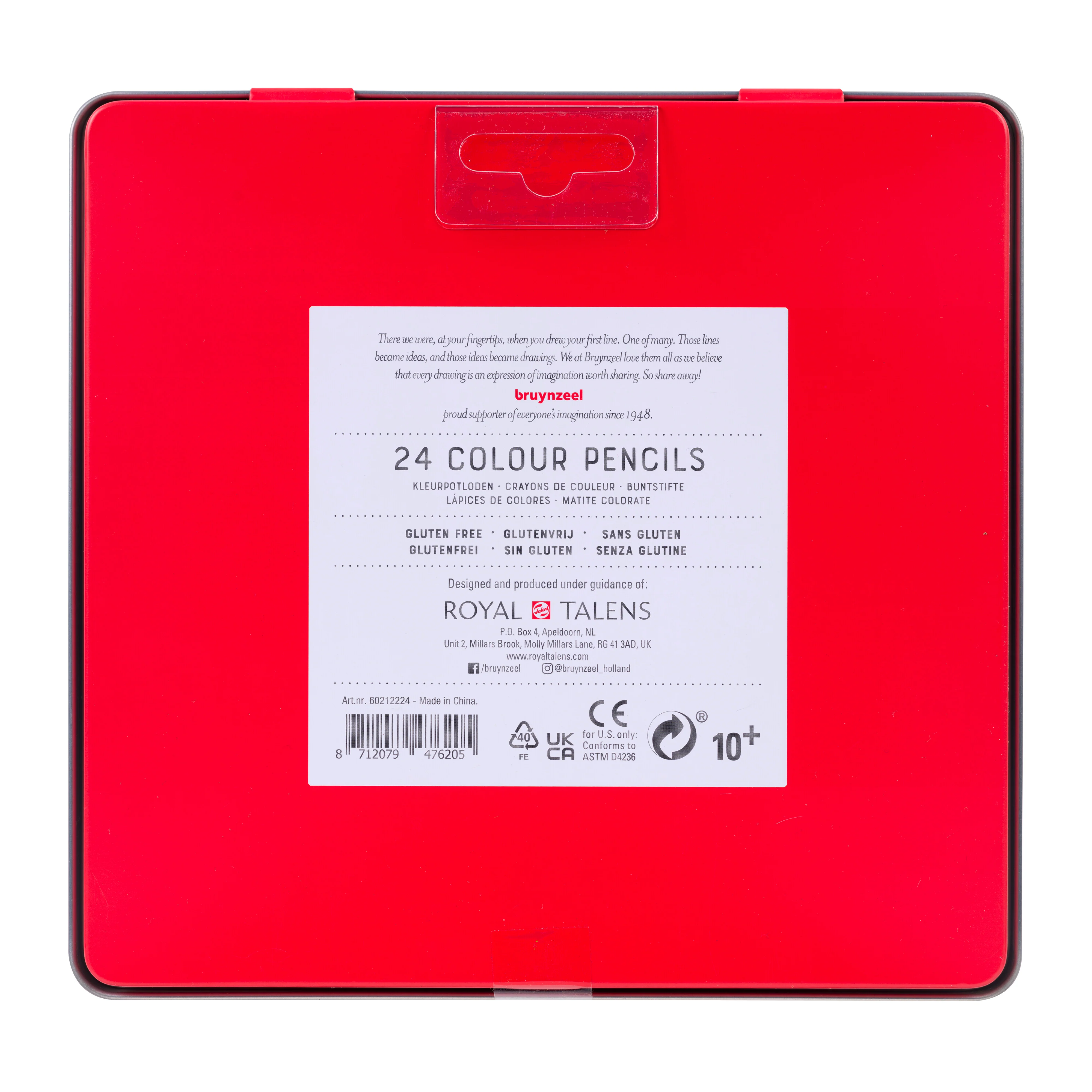 24 colour pencils in a tin. These colour pencils are must-haves for every school bag! The core of the pencils is made of high quality pigments, which gives them a good colour output. Ideal for use during subjects such as drawing, mathematics or biology. The pencils are stored in a compact container, making them easy to carry. Gluten-free. All Bruynzeel pencils are carefully made from responsibly sourced wood. Bruynzeel pencils are also double-glued so that they are extra strong and the chance of the core breaking - for example, if the pencil falls to the ground - is minimal! This prevents broken points and ensures that you rarely need to sharpen the pencil.